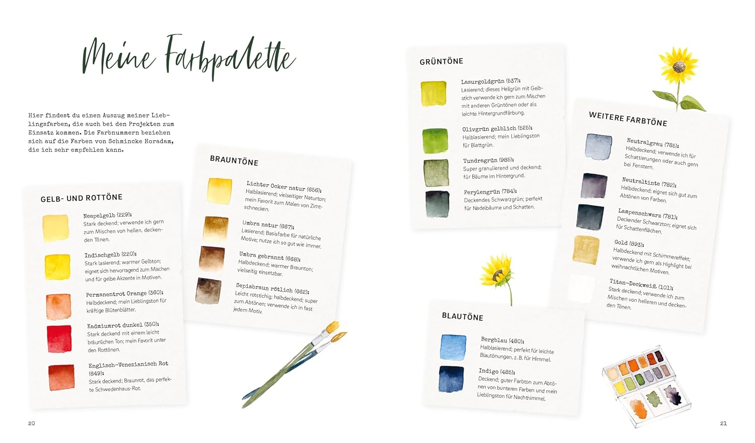 • 20 Watercolor-Motive von einfach bis schwer malen