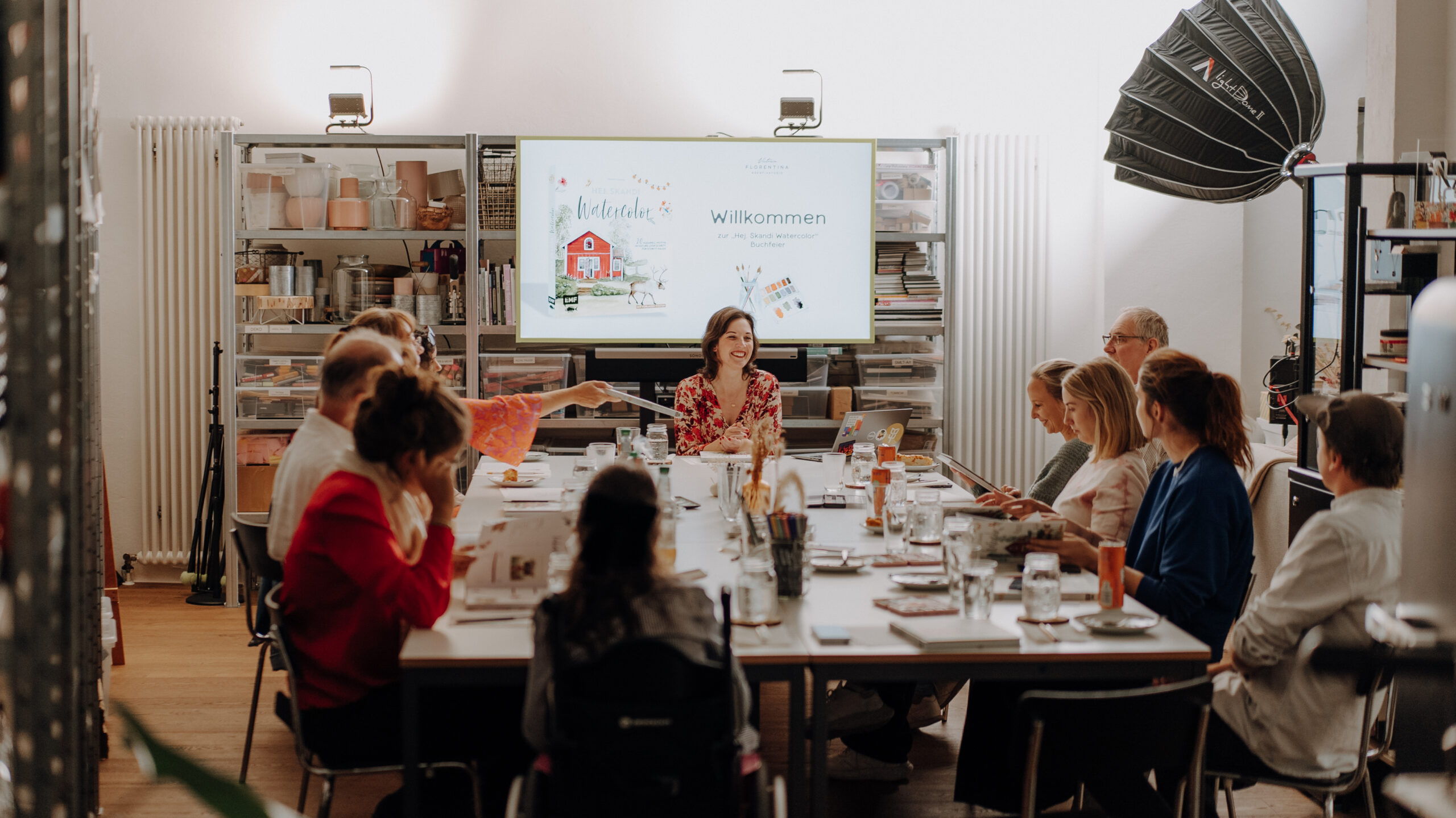 Los geht’s! Im gemeinsamen Kreativworkshop gestalten wir, abgestimmt auf Thema und Teilnehmer, die ersten Watercolor Motive. Übungen zu Grundlagen und Techniken kommen natürlich nicht zu kurz.